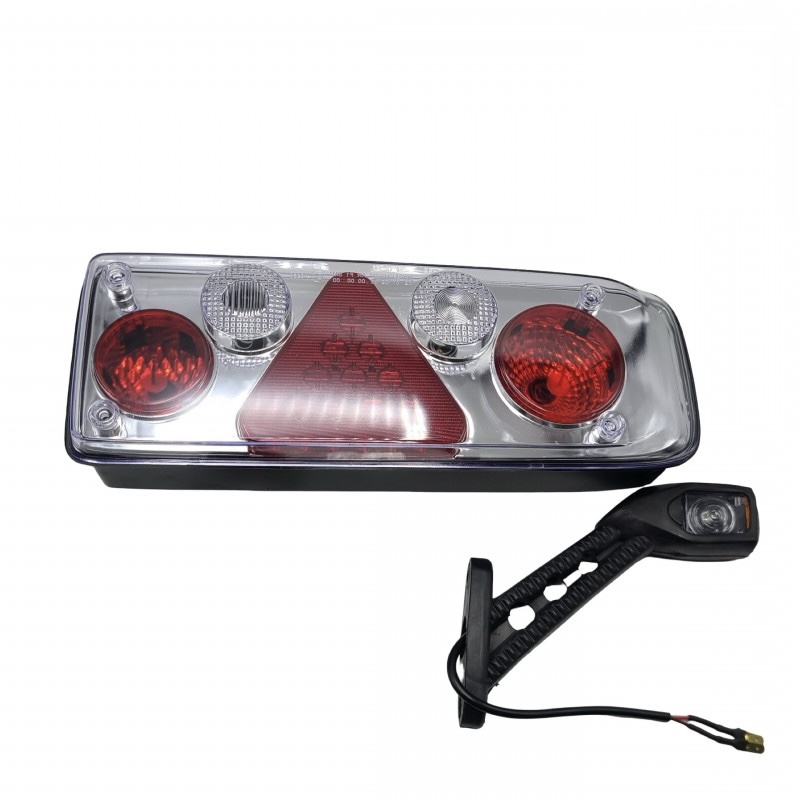 Многофункциональный задний фонарь для прицепов и полуприцепов KOGEL и KRONE, правая сторона. Выносной габарит повышает заметность прицепа на дороге и улучшает безопасность при движении в тёмное время суток. Штекерное подключение обеспечивает быструю установку без доработок. Практичный и надёжный вариант для замены штатного фонаря