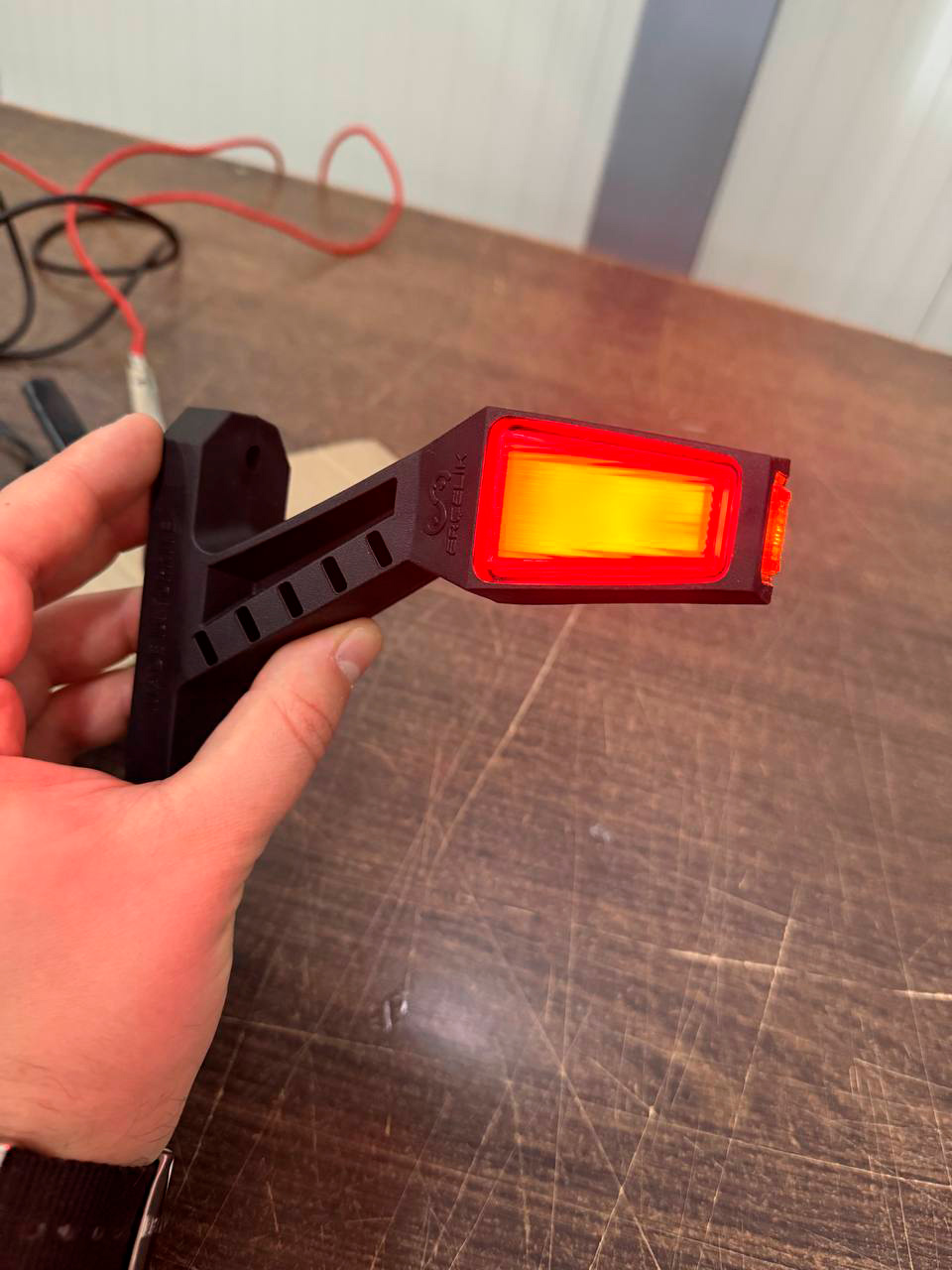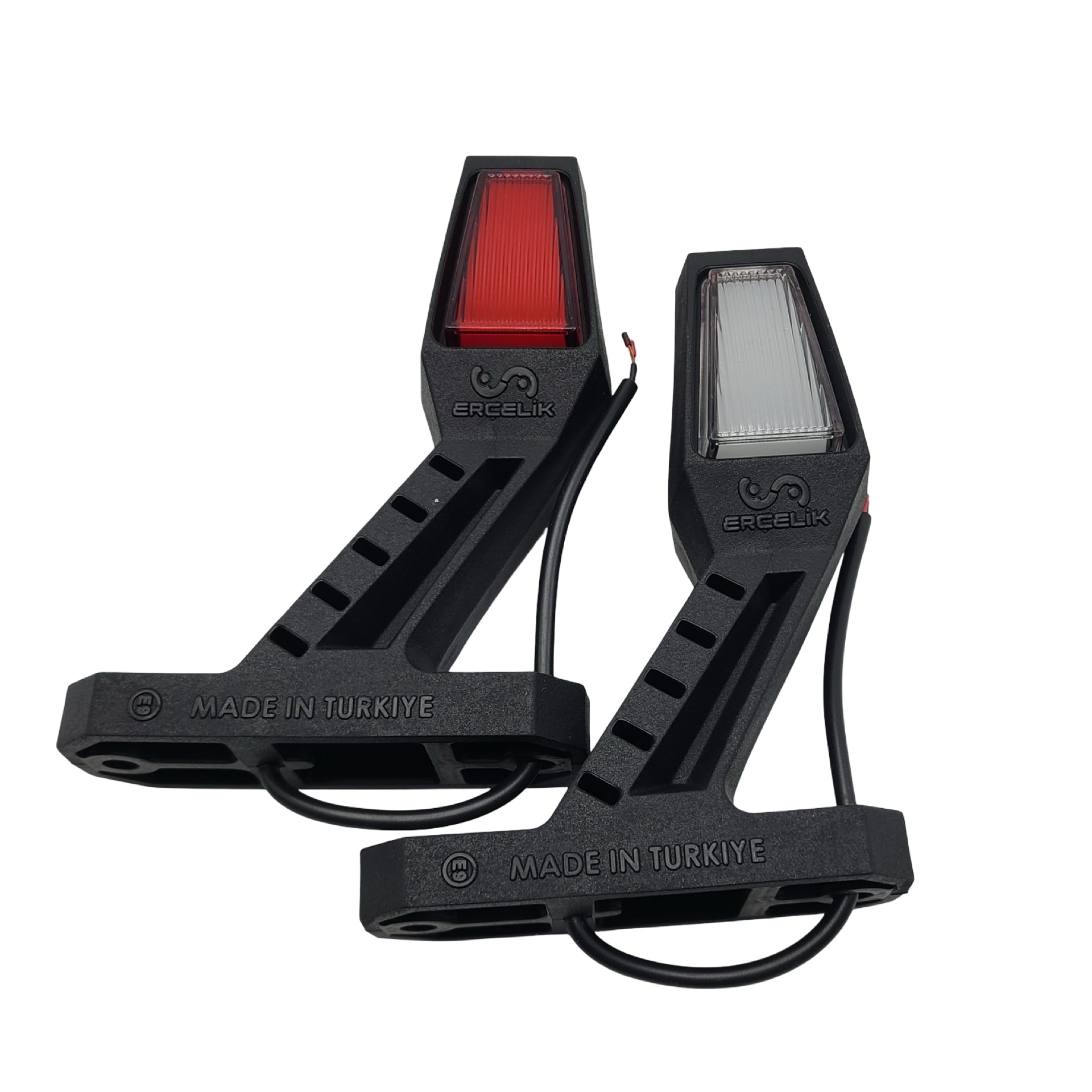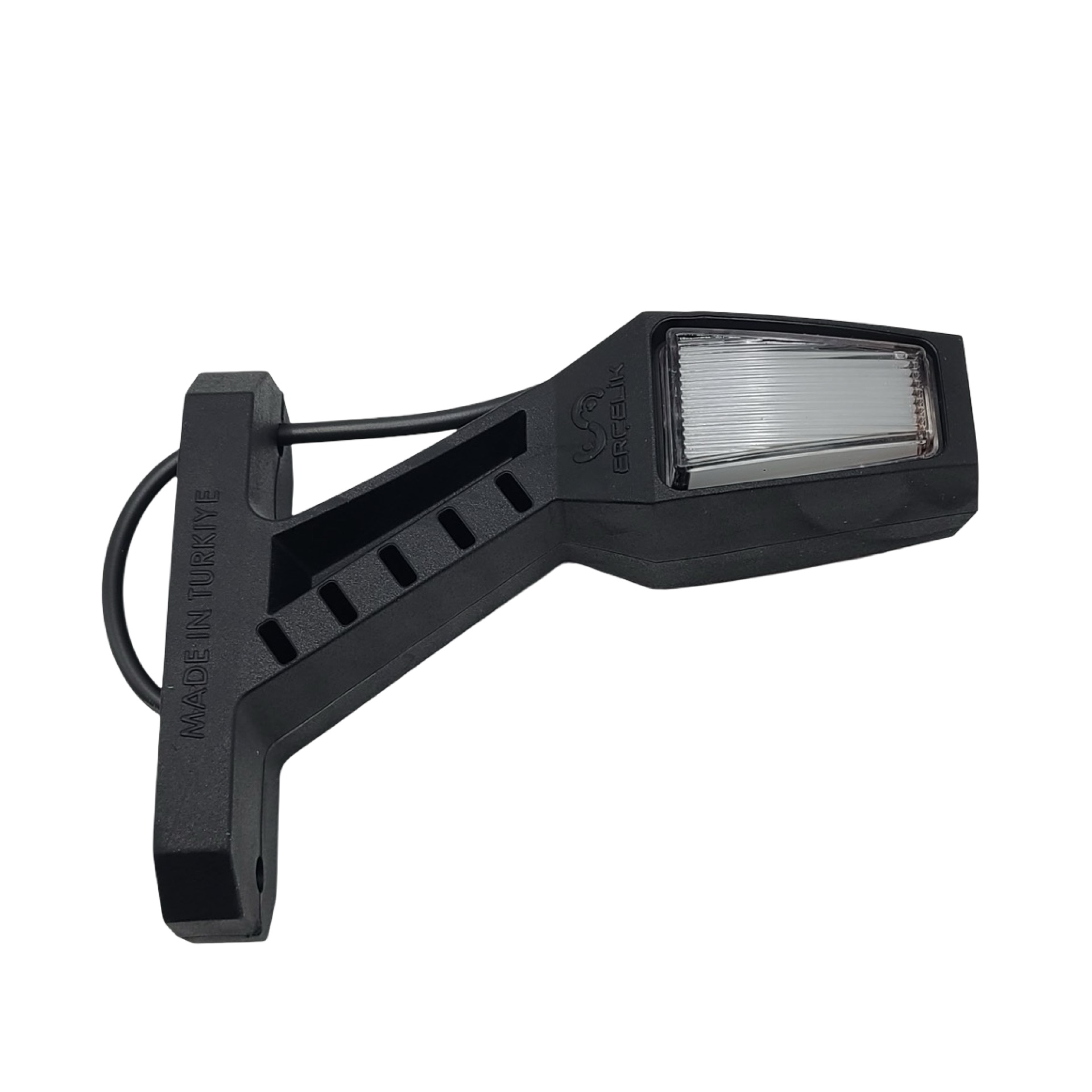 Габаритний ліхтар «Ріг» LED 12–24V, 14 см, неон Ercelik призначений для встановлення на вантажні автомобілі, причепи, напівпричепи та комерційний транспорт. Подовжена форма та яскраве неонове світіння забезпечують хорошу видимість транспорту в темну пору доби та під час складних погодних умов.