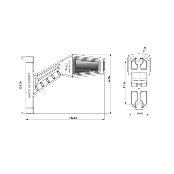 Корпус виготовлений із якісних матеріалів, стійких до вологи, пилу, вібрацій і перепадів температур. Виробництво — Туреччина. Практичне рішення для водіїв і автопарків, які цінують надійність, довговічність і сучасний зовнішній вигляд вантажного транспорту.