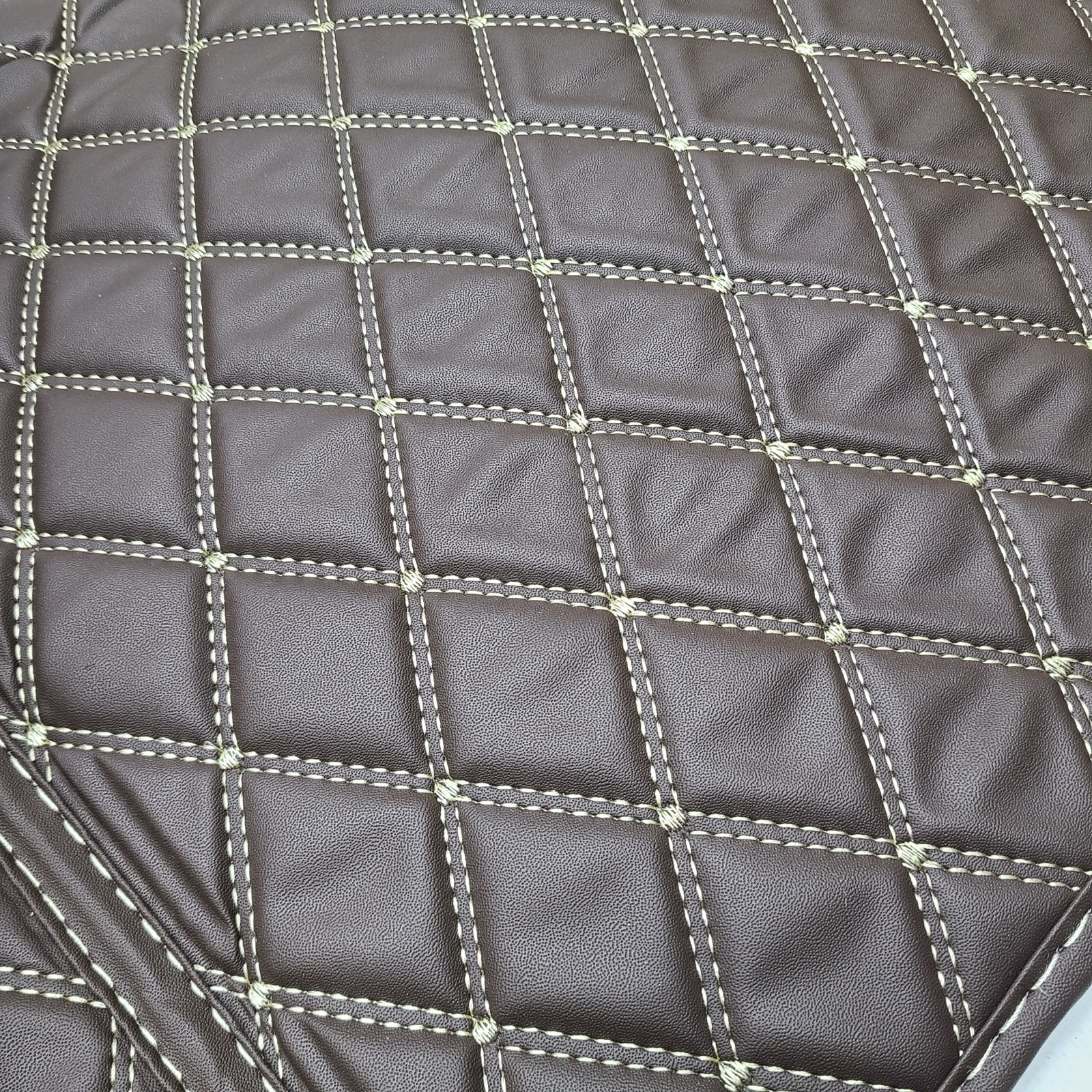 Килимок виготовлений із якісної еко-шкіри, що відрізняється міцністю, зносостійкістю та простотою догляду. Коричневий колір надає салону преміального вигляду та гармонійно поєднується з інтер’єром кабіни. Конструкція 3D точно повторює форму підлоги, забезпечуючи щільне прилягання та максимальне покриття.